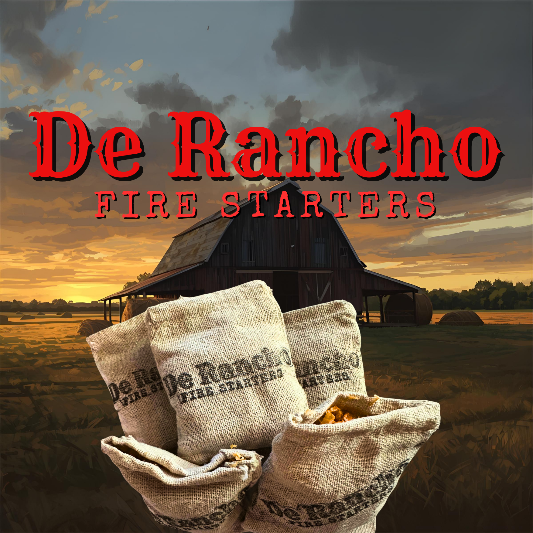 🔥 De Rancho Fire Starters are all-natural, hand-packed in 100% cotton sacks with sawdust chips and a lite coat of food-grade paraffin wax. Each starter burns 8–12 minutes, making it the safe, clean, and reliable way to light your BBQ, smoker, or campfire — no chemicals, no lighter fluid taste.